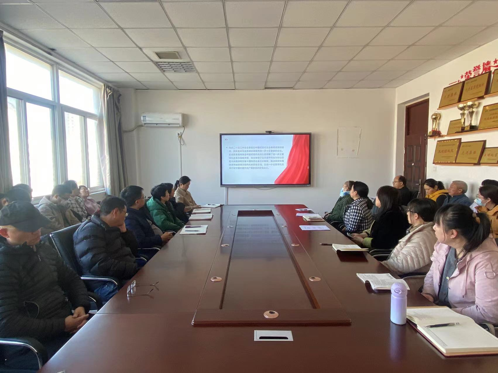 会议第二个阶段,全体教职工共同观看了党的二十届三中全会暨《中共中央关于进一步全面深化改革、推进中国式现代化的决定》总体精神解读学习视频。