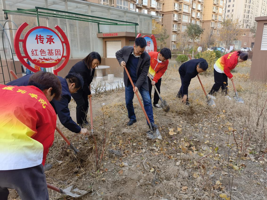 座谈结束后,党员师生在龙马社区开展种花美化环境活动,以实际行动为社区环境挥锹添绿。活动中,大家身着志愿服,齐聚在社区种植点,热火朝天地干了起来。整穴放苗、填土压实,将一株株花期长、好养护的花苗栽入土壤中,忙得不亦乐乎。经过共同努力,社区的杂草被清除,旧土被翻松,一棵棵新栽的花苗在风中随风摇曳,焕发出盎然生机。