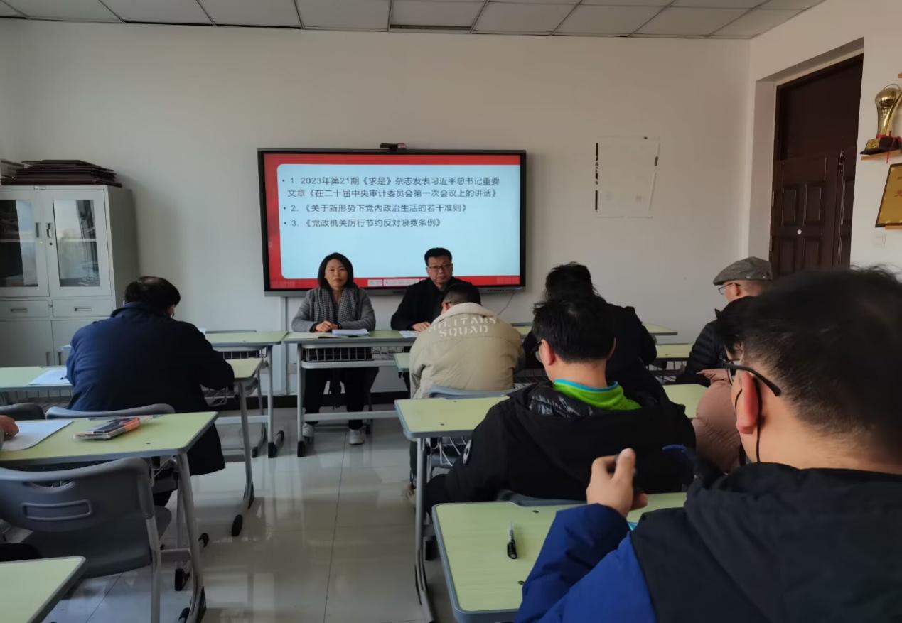 会上,大家共同学习了《求是》2023年第21-习近平总书记重要文章《在二十届中央审计委员会第一次会议上的讲话》;《关于新形势下党内政治生活的若干准则》;《党政机关厉行节约反对浪费条例》等相关内容。