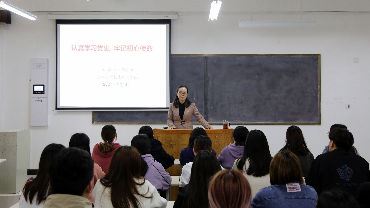 最后,陈君丽激励同学们要坚持学习党史与学习新中国史、改革开放史、社会主义发展史相贯通,做到学史明理、学史增信、学史崇德、学史力行,立足本职,勇担使命,勇于创新,为全面建设社会主义现代化国家、实现中华民族伟大复兴中国梦而不懈奋斗。