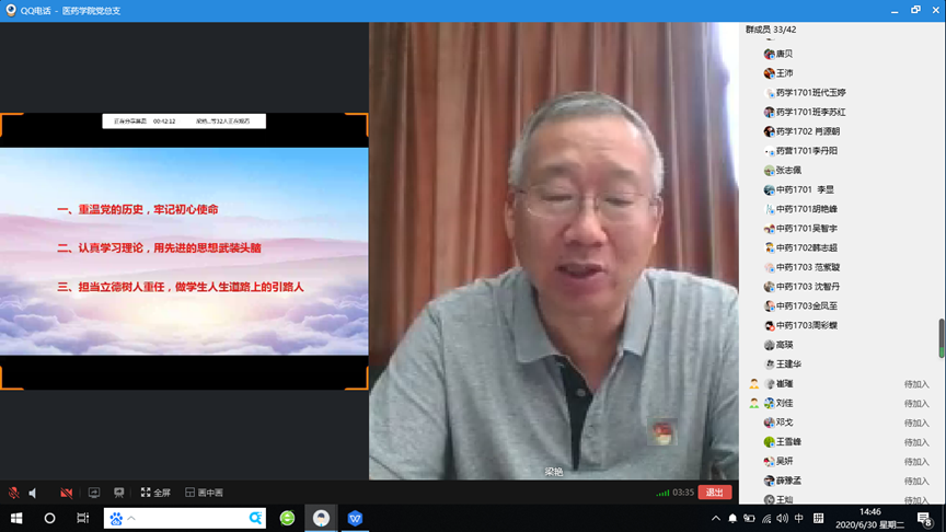 朱书记从三个方面对全体党员如何在常态化疫情防控的形势下发挥党员先锋模范作用谈了心得体会:一是重温党的历史,牢记初心使命;二是认真学习理论,用先进的思想武装头脑;三是担当立德树人重任,做员工人生道路上的引路人。朱书记指出,3044永利集团全体党员要立足本职工作,结合自身专业优势,发挥党员先锋模范作用,让党旗在防控疫情斗争第一线高高飘扬,为医药健康行业培养更多优秀人才。