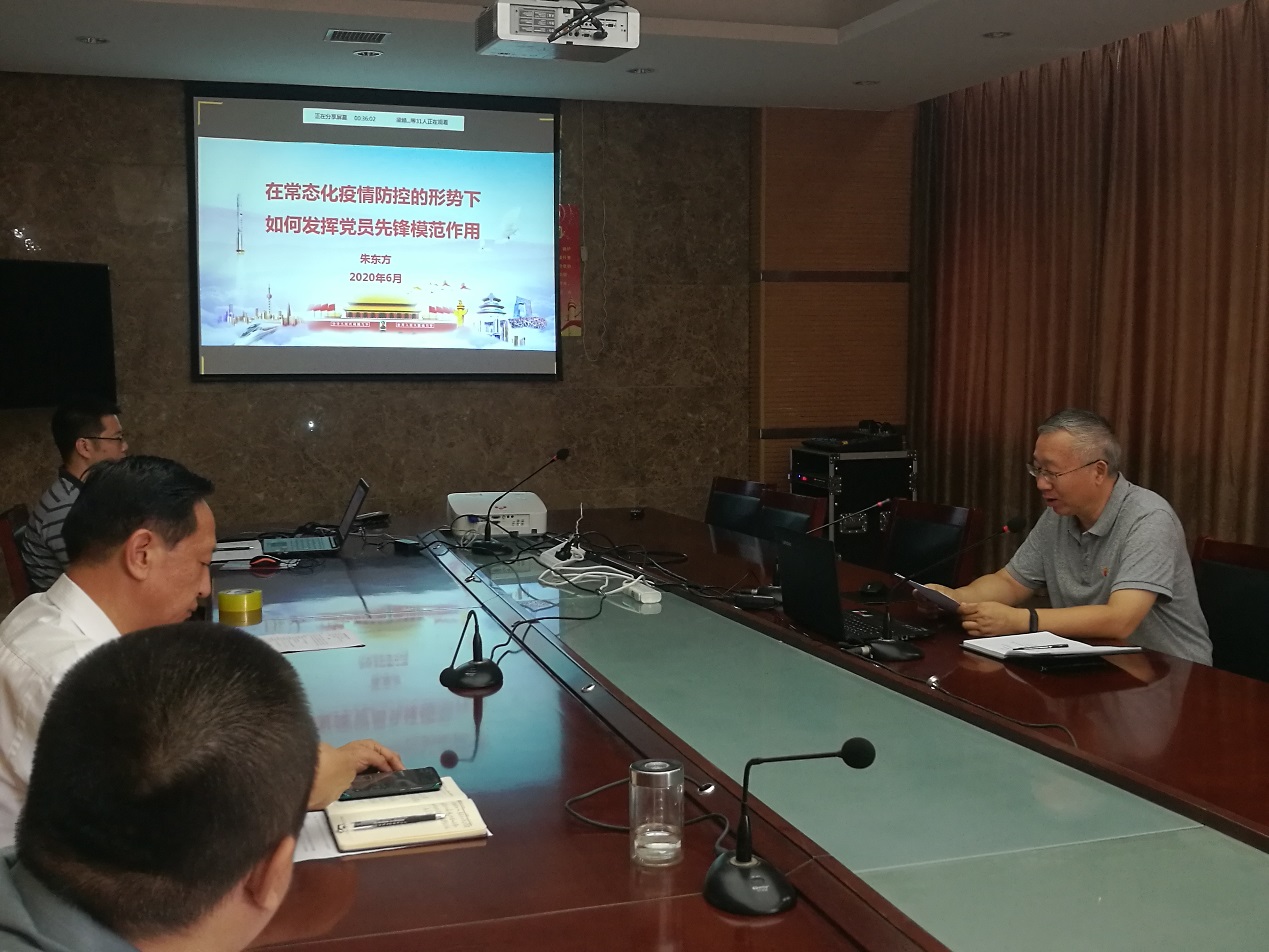 6月30日下午,在中国共产党成立99周年的生日前夕,根据公司基层党组织常态化疫情防控“四个一”行动的部署,公司党委副书记朱东方为3044永利集团全体党员讲授常态化疫情防控专题党课《在常态化疫情防控的形势下如何发挥党员先锋模范作用》。党课采取线上线下相结合的方式进行,公司党总支书记韩宝来、副书记梁艳以及其他支委委员在行政楼四楼第一会议室参加,公司其他党员通过腾讯会议收看直播。