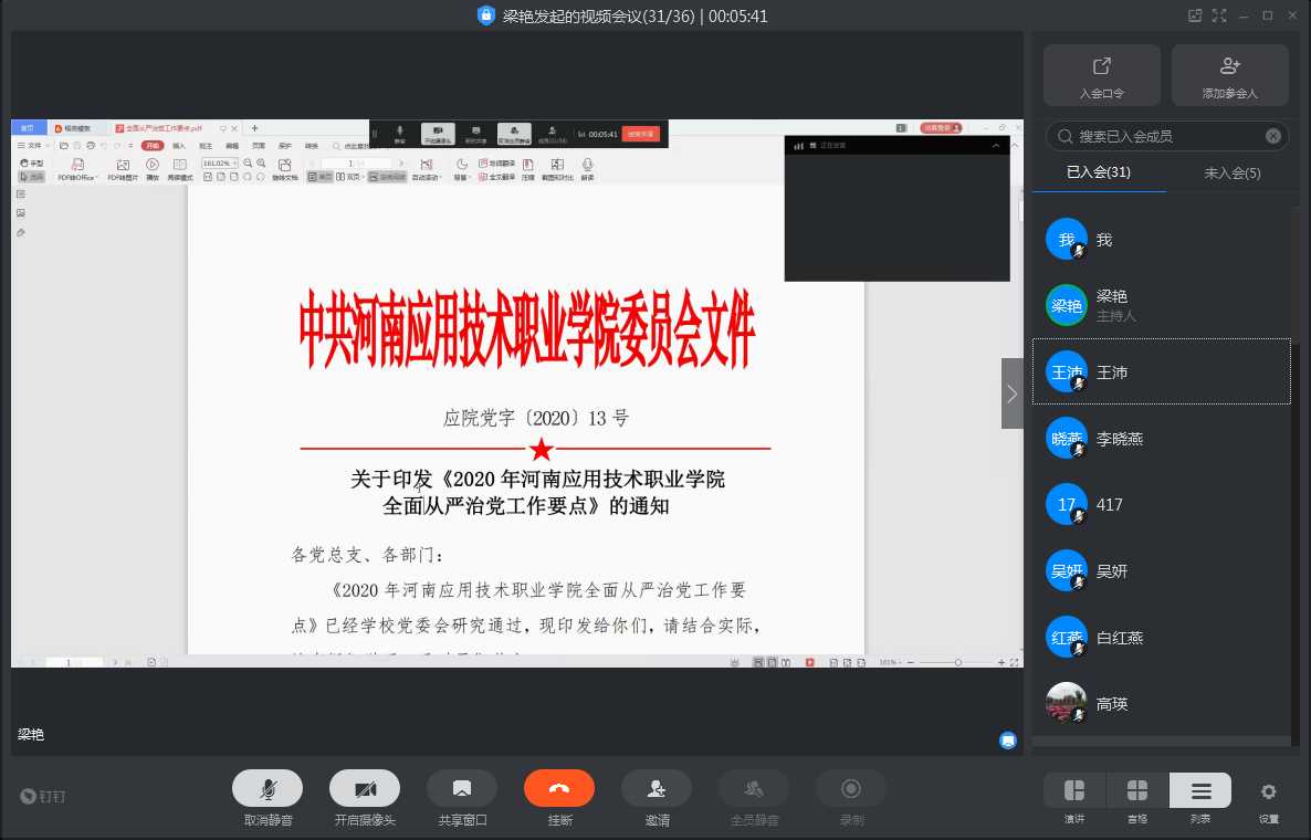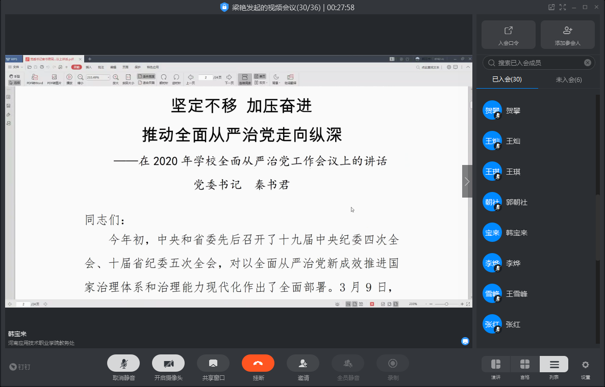 按照公司统一安排,6月2日下午,​公司党总支以线上视频会议的形式组织全体教职工学习了《2020年永利3044集团全面从严治党工作要点》和党委书记秦书君同志在2020年公司全面从严治党工作会议上的讲话。学习由党总支书记韩宝来和党总支副书记梁艳领学,​3044永利集团全体教职工参加学习。