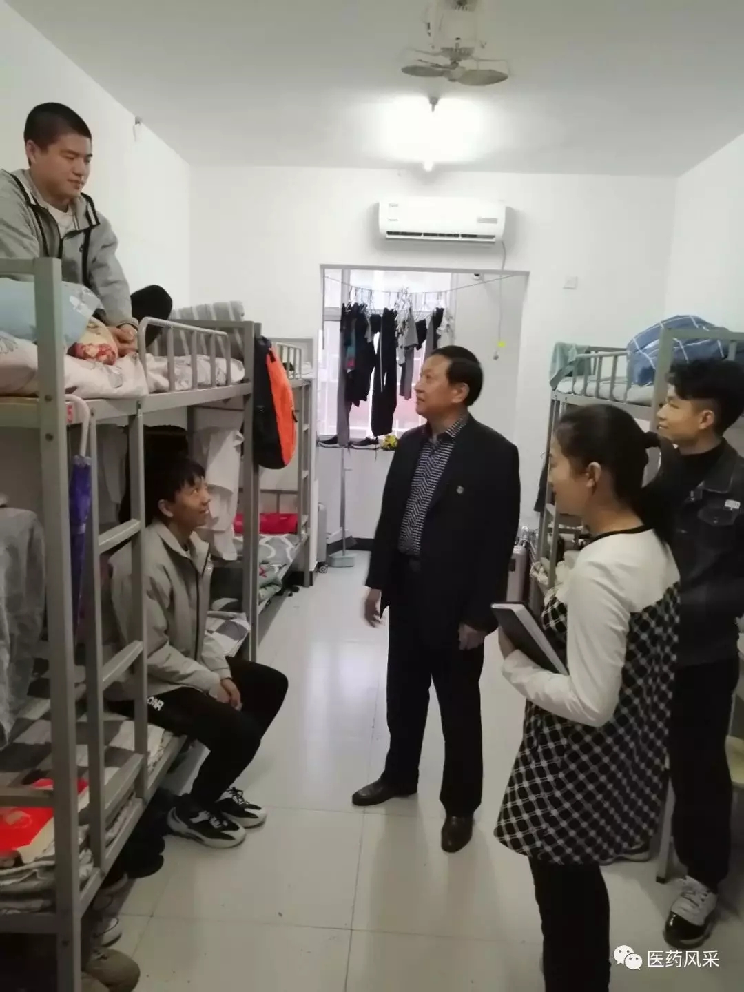 在员工宿舍,韩书记详细询问了学习生活情况:“上课学习内容能不能跟上”,“老员工活能不能适应”,“晚上休息情况怎么样”,“对公司食堂的饭菜满意不满意”“天凉了多穿点衣服”“好好照顾自己”“有什么困难就找辅导员”……暖心的问候和贴心的交谈让员工倍感亲切,同学们非常感谢老师的关心,反映了他们的思想、学习和生活情况,韩书记和梁书记对员工关心和反映的一些问题进行了耐心的解释和答复。