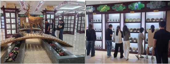 活动现场,中医药博物馆内古韵与科技交相辉映,各个展区匠心独运,生动展现中医药的悠久历史与深厚底蕴。踏入中药材展示区,仿若穿越千年药香长廊,开启一场跨越千年的本草对话,各类珍贵药材以独特的形态、气味与功效,向参观者诠释着中医药天人合一的智慧。配合教师 “以形辨药、以味识药” 的讲解,让参观者直观感受到中医药 “辨药识药” 的独特智慧;中医药历史文化展区内,华佗五禽戏的浮雕栩栩如生,古老的药碾、戥秤静静陈列,将中医药数千年的发展历程娓娓道来,引得众人频频驻足,沉浸于中医药文化的深邃世界。