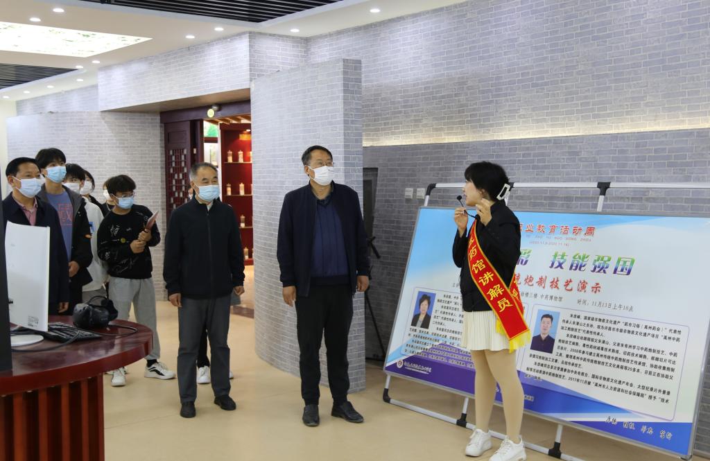 在中医药博物馆,义务讲解员崔璀老师对馆内的各类中医药标本和我国中医药的发展历史进行着专业讲解;在中药炮制实训室,药膳社的同学们正在指导老师李烨的指导下现场制作各类中医药产品;在公司广场,医学基础教研室杨卫兵等老师们正在带领员工探索“血型的奥秘”……丰富多彩的活动吸引了各位领导和大量员工的积极参与。