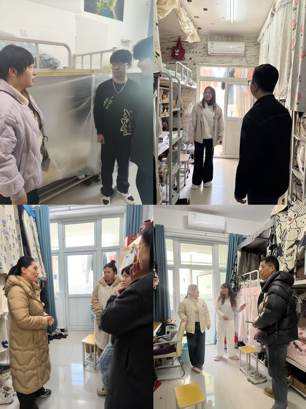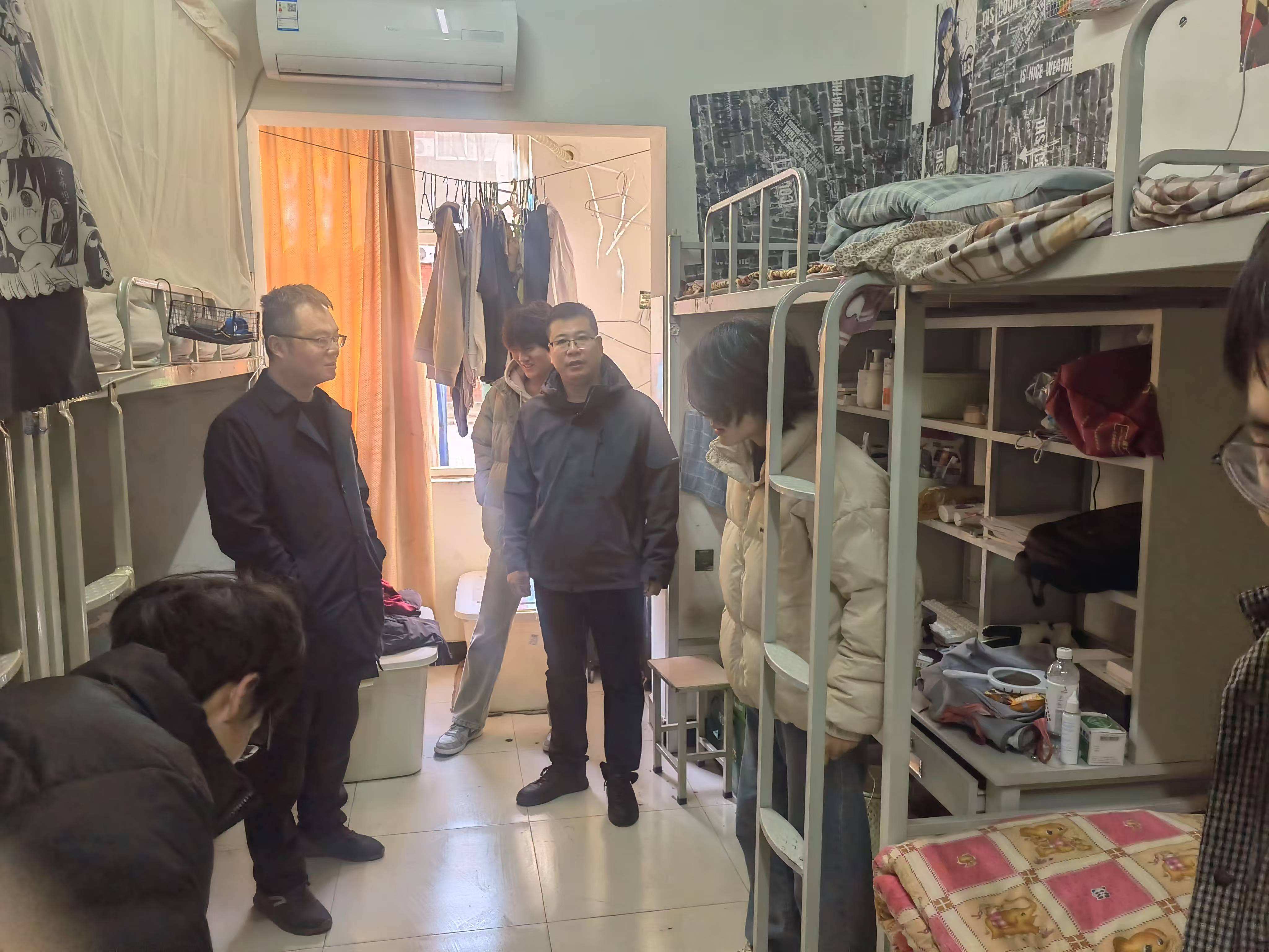 检查过程中,老师们与同学们进行了深入交流,叮嘱同学们近期气温波动较为频繁早晚温差过大,要注意防寒保暖,关注自身身体健康状况;了解同学们假期生活状况,语重心长地嘱咐大家,新学期已然开启,应当及时对生活节奏做出相应调整,科学合理地规划作息时间,以一种积极向上、饱满昂扬的精神状态,全身心地投入到新学期的学习与生活当中。老师们反复向同学们强调,务必牢固树立安全意识,时刻保持警惕,共同努力营造一个安全有序、健康舒适、和谐融洽的宿舍环境,让宿舍真正成为同学们温暖的 “家”。