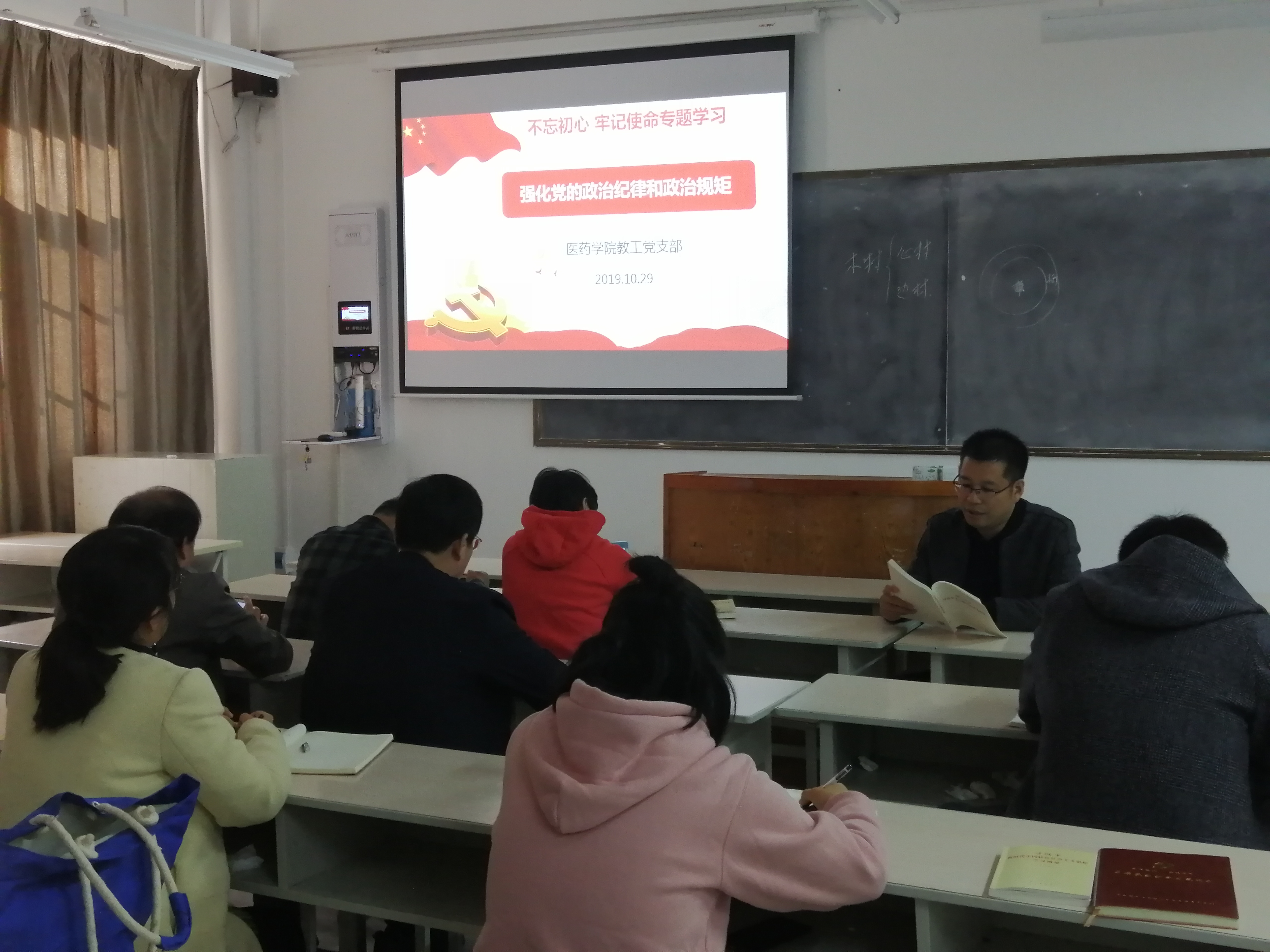 按照公司“不忘初心 牢记使命”主体教育学习安排,2019年10月29日下午,3044永利集团教工党支部、员工党支部组织全体党员分别在教学楼104和105教室进行集中学习。员工党支部由支部书记梁艳领学,教工党支部由宣传委员肖东伟领学。