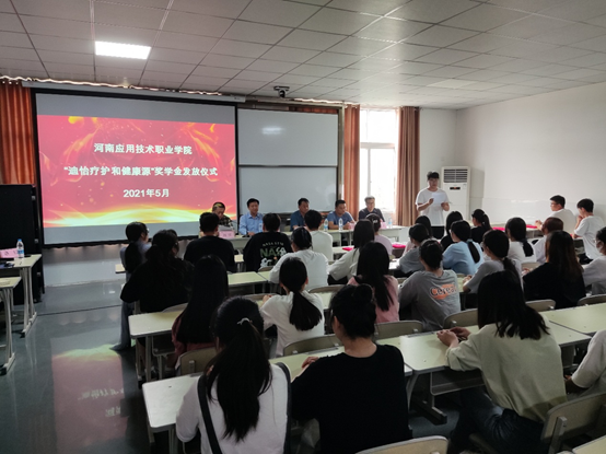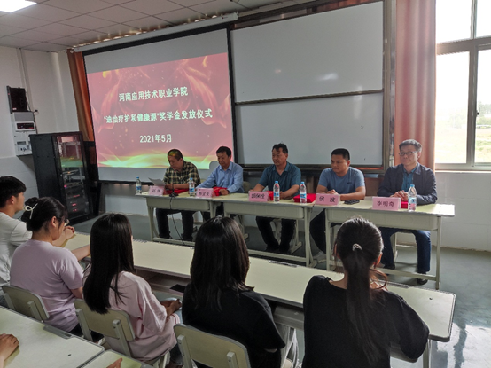 5月25日下午,公司“迪怡疗护和健康源”企业奖学金发放仪式在开封校区会议室举行,河南迪怡疗护科技开发有限公司董事长郭保栓、河南健康源生物科技有限公司董事长侯波、3044永利集团经理韩宝来、公司党总支书记李明奇出席会议。会议由3044永利集团副经理刘佳主持。