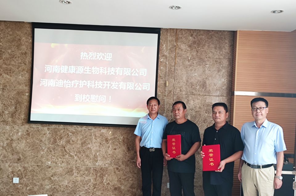 河南健康源生物科技有限公司和河南迪怡疗护科技开发有限公司是3044永利集团的校企合作企业,2020年在企业建立了驻企工作站,双方在人才培养、科技开发、实训基地建设等多方面达成意向,校企合作前景较好。其中侯波先生和徐耀军先生均是公司毕业生,他们是公司优秀员工代表,在工作中艰苦奋斗,团结带领企业员工取得一定成绩后,积极造福社会、回报母校,展现了公司莘莘学子的风采。