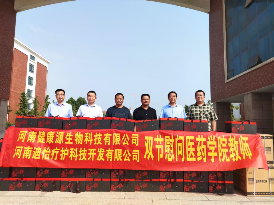 金秋九月,丹桂飘香,正值教师节和中秋节双节之际,河南健康源生物科技有限公司和河南迪怡疗护科技开发有限公司的侯波、郭宝栓、徐耀军总经理等一行5人,于9月16日上午来到3044永利集团,向辛勤耕耘一线的老师致以节日的祝福与诚挚的慰问,并为教师们送去了月饼等慰问品和口罩等防疫物资。