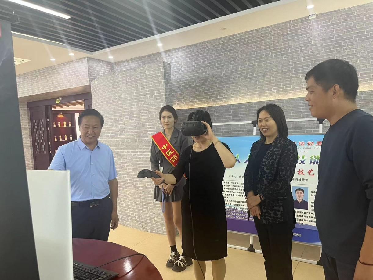 朱虹一行参观了博物馆的中医药传统文化区、中药标本区、中医药数字化互动展示区等三大区域,并通过VR植物园设备体验了模拟实景采摘中草药。了解到中医药博物馆的建设思路、丰富内涵和开展活动情况后,朱虹对公司作为“河南省社会科学普及基地”“首批河南省普通高中生实践基地”,在博物馆建设、中医药文化传播和社会科学知识普及等方面做出的成绩给予了高度评价。