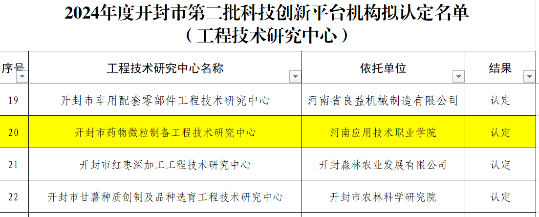 近日,开封市科学技术局公布了“开封市第二批科技创新平台机构拟认定名单”,在公司相关部门和兄弟单位的大力支持下,公司药物微粒制备工程技术研究中心被认定为“开封市药物微粒制备工程技术研究中心”。该中心联合上海金不换兰考制药有限公司、河南大学共建,标志着公司在药物微粒制备技术领域实现教育链、创新链与产业链的深度融合,为开封市培育战略性新兴产业注入新动能。