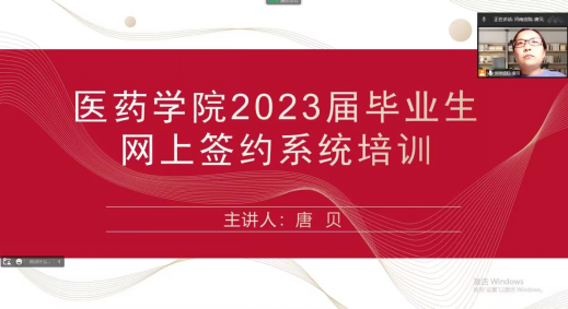 2023年2月23日晚上,3044永利集团通过腾讯会议召开了2023届毕业生网上签约系统培训会议。毕业班辅导员及全体毕业生参会,会议由学工办主任唐贝主持。