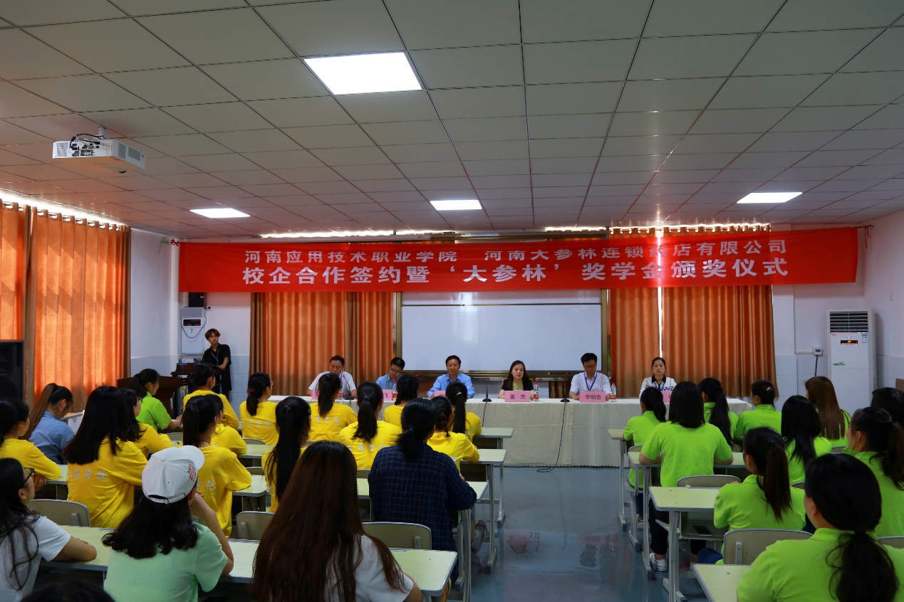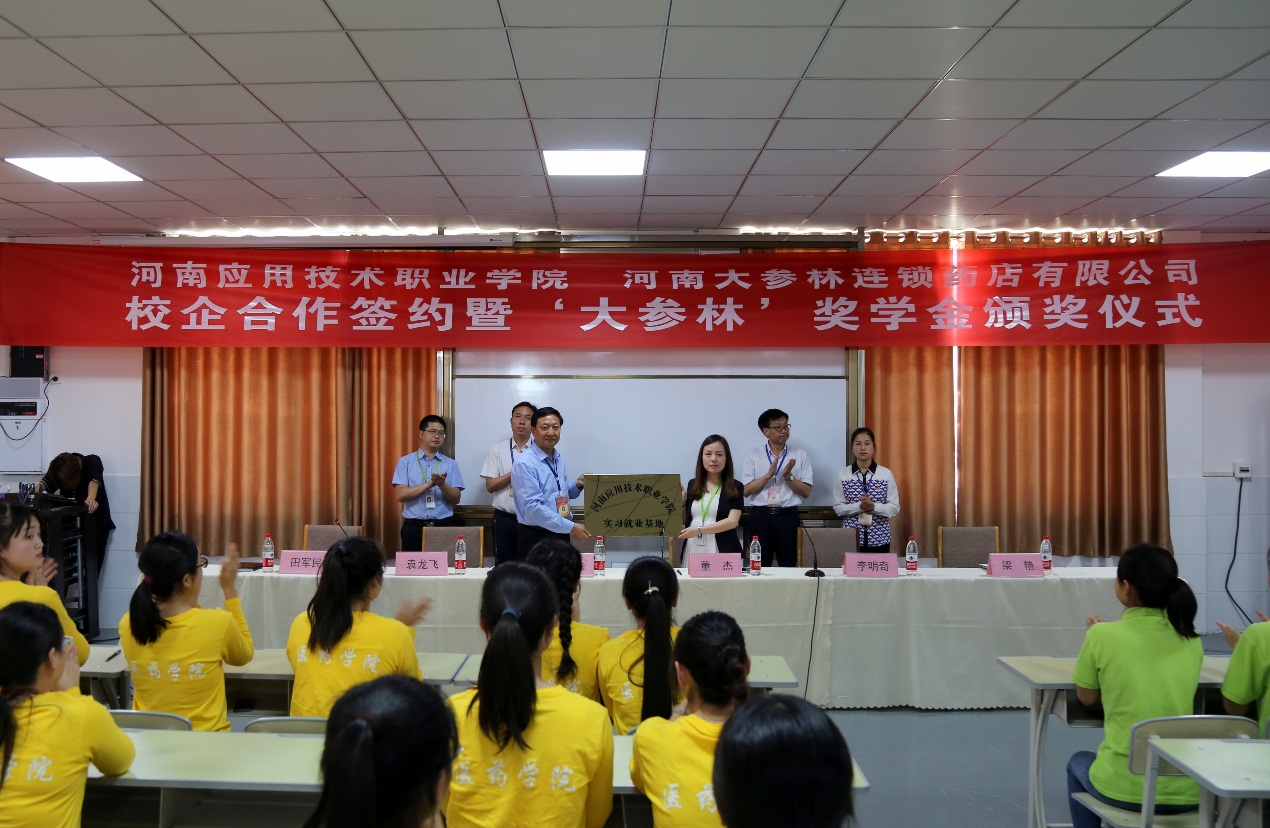 2019年5月21下午,公司与河南大参林连锁药店有限公司校企合作签约暨企业奖学金发放仪式在东校区汽修实训楼三楼会议室隆重举行。3044永利集团经理韩宝来、河南大参林连锁药店有限公司河南大区人事经理董杰及相关部门负责人出席签约暨颁奖仪式。
